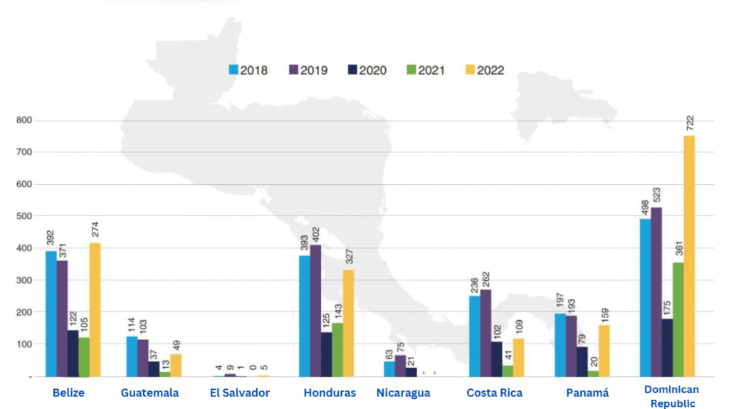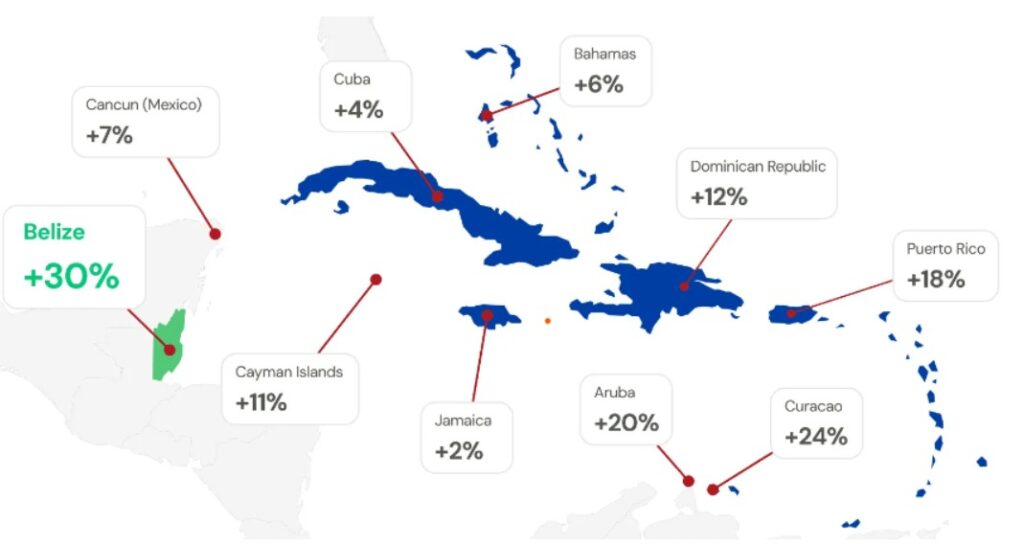 Tourism Dashboard Tourism Dashboard Belize - cruise ports Main Ports Belize PortFort Street Tourism Village (FSTV)Harvest Caye (caters only for Norwegian Cruise Line)Punta Gorda Local Ports DangrigaPlacencia PeninsulaSan PedroBig Creek Cruise Ship Lines Carnival Cruise LinesRoyal Caribbean InternationalCelebrity CruisesPrincess CruisesMSC CruisesSafari VoyagerViking MarsSun Princess The country’s cruise ship arrivals surged 47 % in 2023 over 2022, with 904,189 visitors. Belize - airports Philip S. W. Goldson International Airport (BZE) Local Airports Belize City Municipal – Sir BarryBowen (TZA)Big Creek (BGK)Caye Caulker (CUK)Caye Chapel (CYC)Corozal (CZH)Dangriga (DGA)Hector Silva (BCV)Independence (INB)Manattee (MZE)Matthew Spain (SQS)Melinda (MDB)Orange Walk (ORZ)Placencia (PLJ)Punta Gorda (PND)San Pedo John Greif II (SPR)San Ignacio Town (CYD)Sarteneja (SJX)Silver Creek (SVK) Private Airports Belizean Dreams Resort HelipadMahogany Bay Resort HelipadThe Lodge at Chaa Creek Helipad AIRLINES American Airlines (AA) Air Canada (AC) Air France (AF) Alaska Airlines (AS) Alaska Airlines (AS) Alaska Airlines (AS) British Airways (BA) Copa Airlines (CM) KLM (KL) Air New Zealand (NZ) Qatar Airways (QR) Sun Country Airlines (SY) United Airlines (UA) Southwest Airlines (WN) WestJet (WS) DOMESTIC AIRLINES Maya Island Air (2M) Tropic Air (9N) cruise visitor arrivals 2024 There are approximately 333 cruise calls to Beli ze annually.This sector cont inues to see steady investments in inf rast ructure and quali ty assurance to meet i ts growing demands. Belize Fastest Growing Caribbean Destination Year-Over-Year Tourism Growth 2023 to 2024 Cruise Ship Tourism Trend Cruises received in the SICA region 2018-2022 Belize Wholesale Distribution Channels Hotel Shops and Stores Aiport Stores Supermarkets Mini markets C Stores Food Service Institutional 2-step Distribution Ship Chandlers Port Kiosks